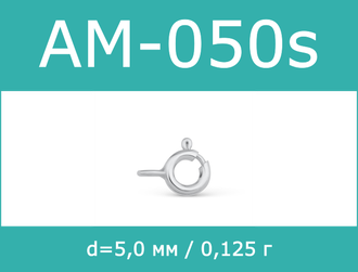 Маленький шпрингельный замок. Изготовлен методом штамповки из серебра 925 пробы. Механизм оснащен пружиной из стали. Основные параметры шпрингеля: диаметр 5,0 мм, средний вес 0,125 грамм. Присоединительное кольцо может быть открытым или закрытым.